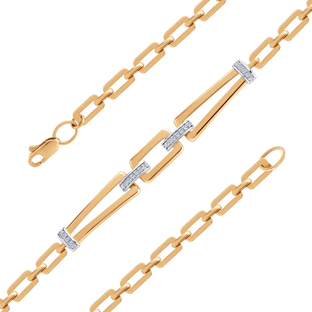 Браслет из красного золота с фианитами