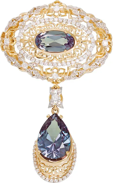631412:337 Брошь из желтого золота с александритами Коллекция - Эксклюзивы 0