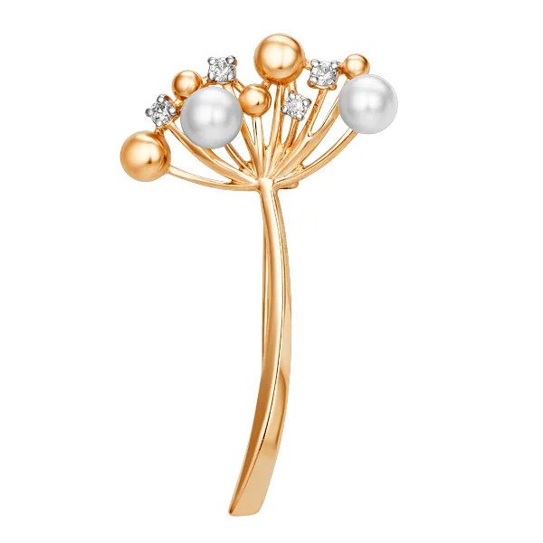 Брошь из красного золота с жемчугом и фианитами 000398-1612