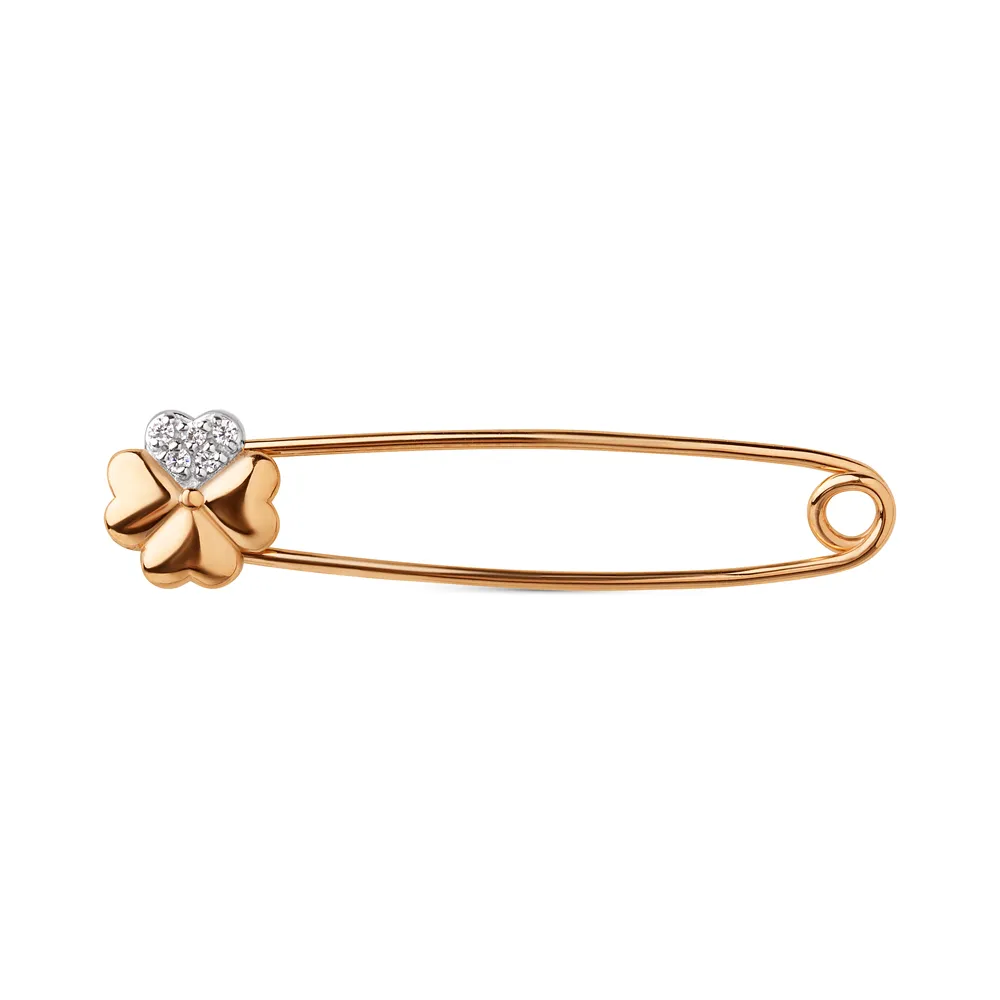 Булавка из красного золота с фианитами