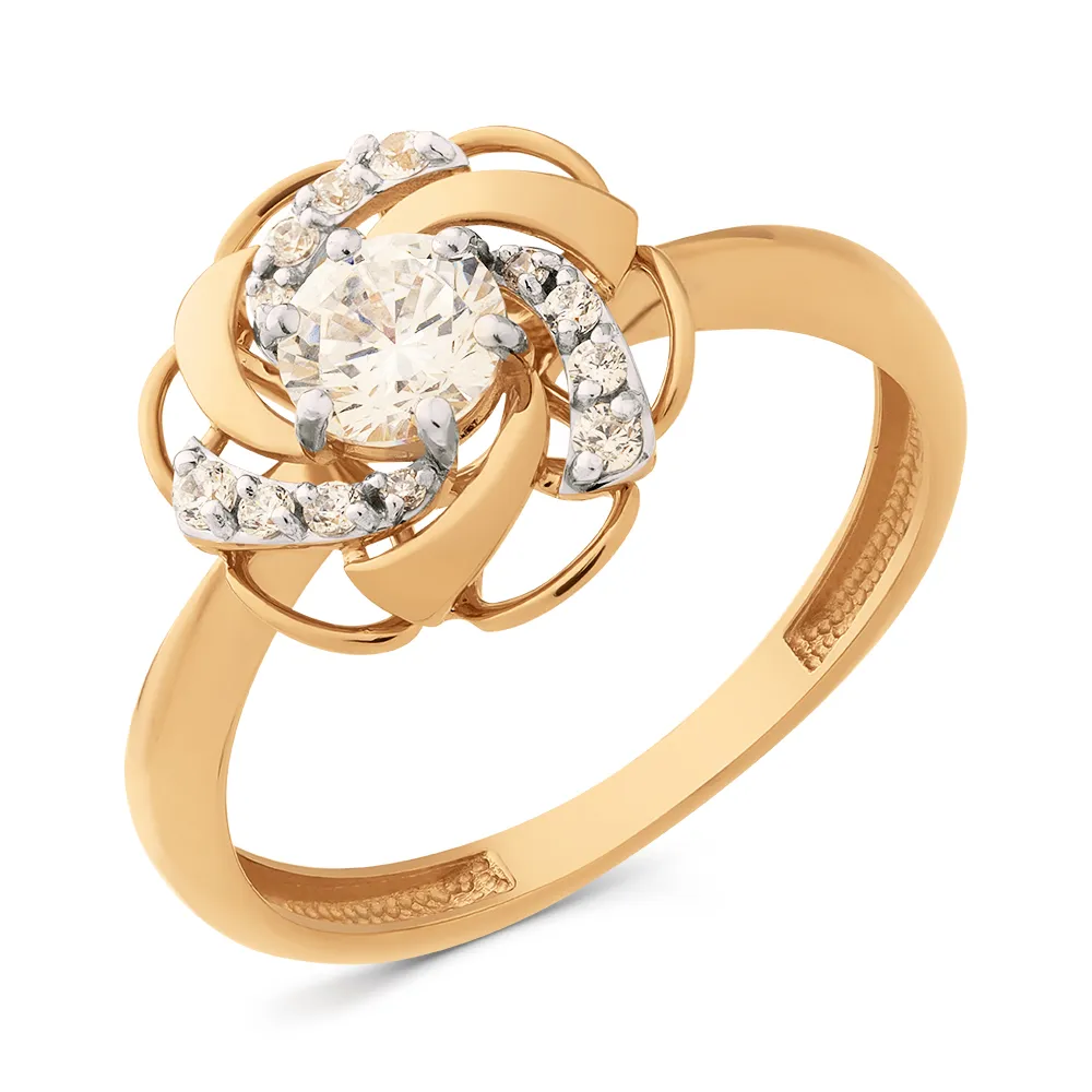 Кольцо из красного золота с фианитами