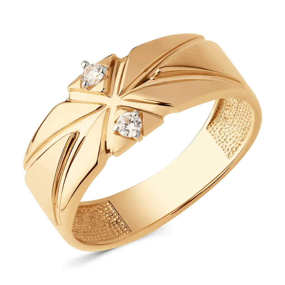 Кольцо печатка из красного золота с фианитами 902901-1102