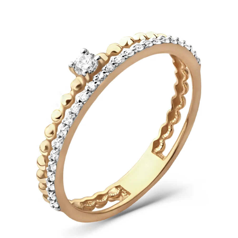 Кольцо из красного золота с фианитами