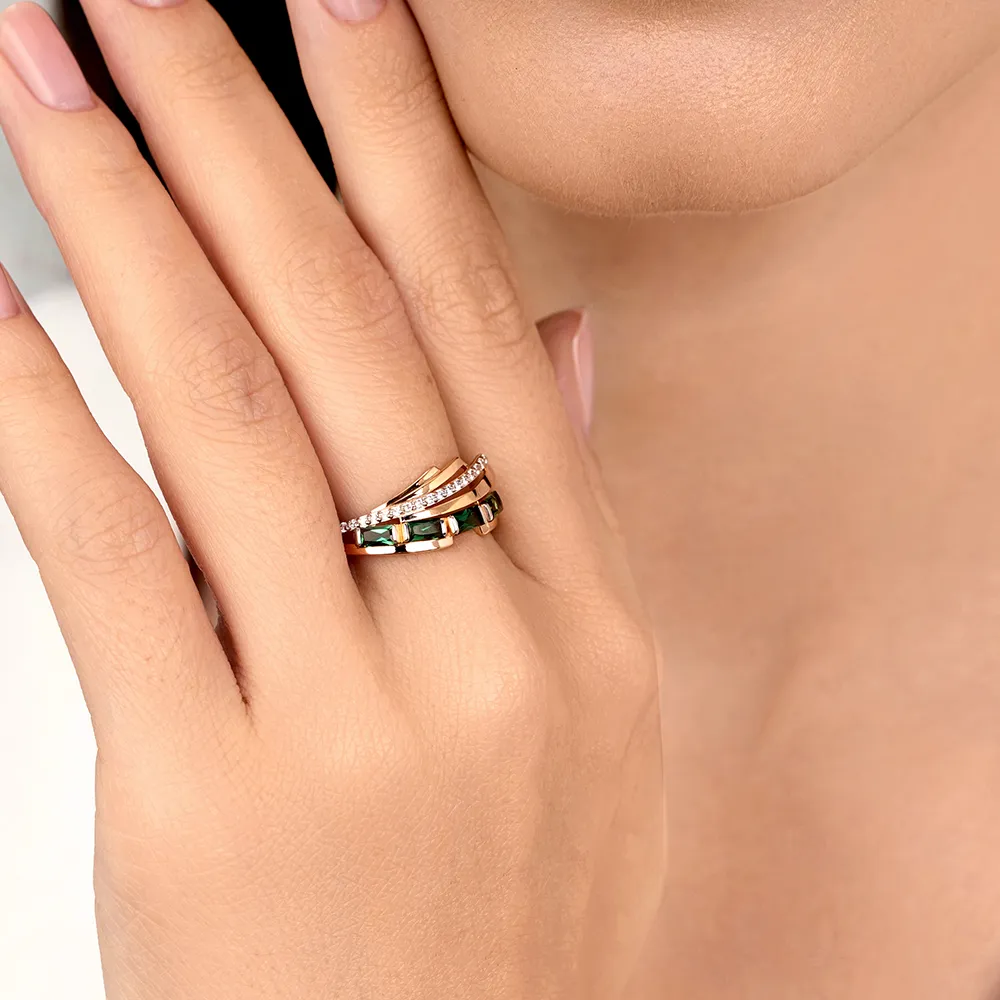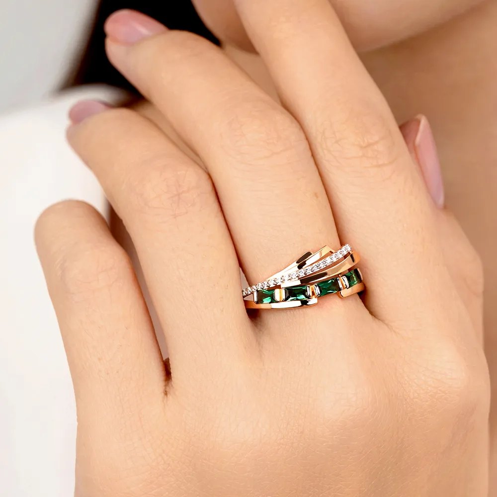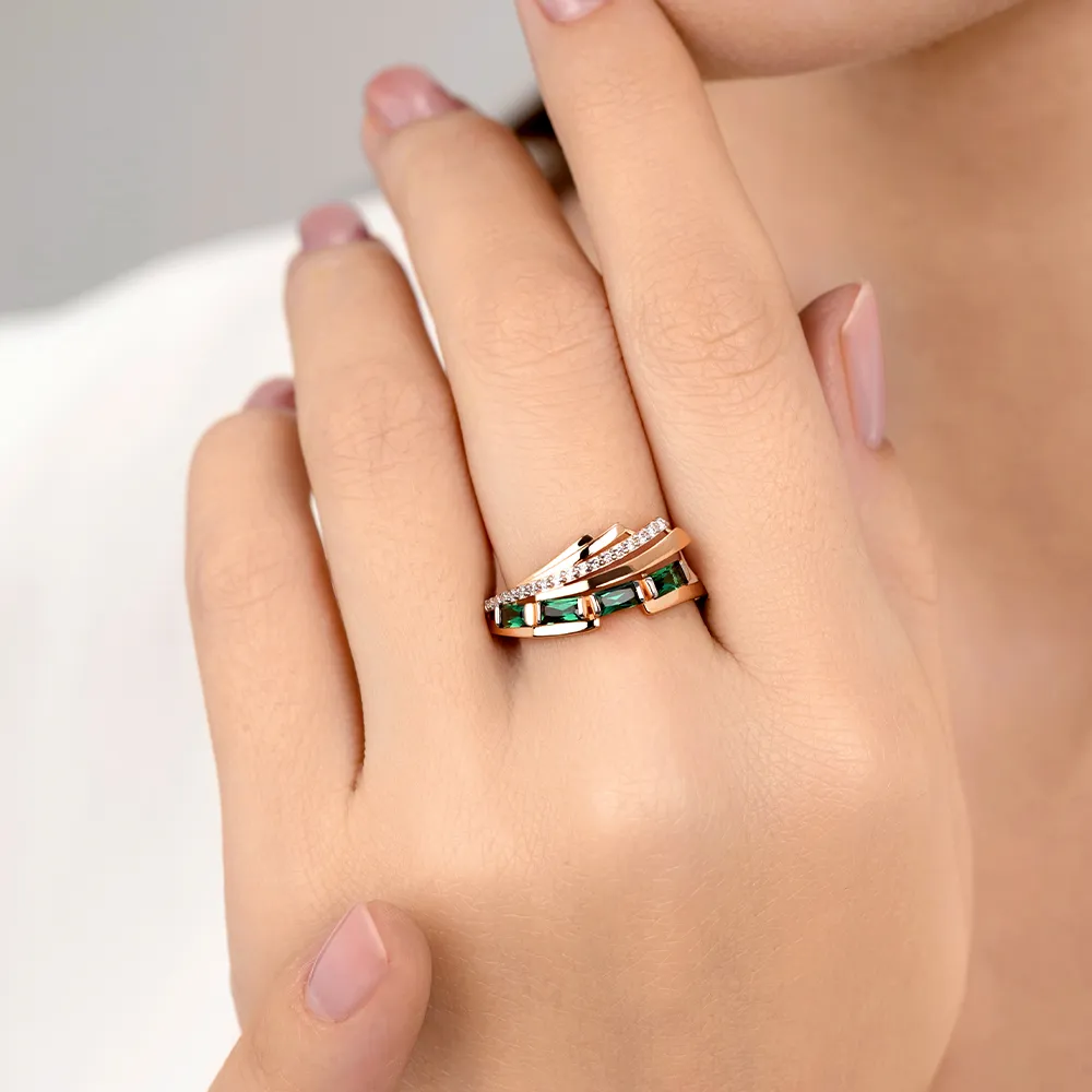 Кольцо печатка из красного золота с фианитами 902901-1102