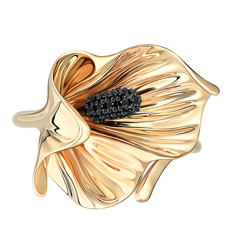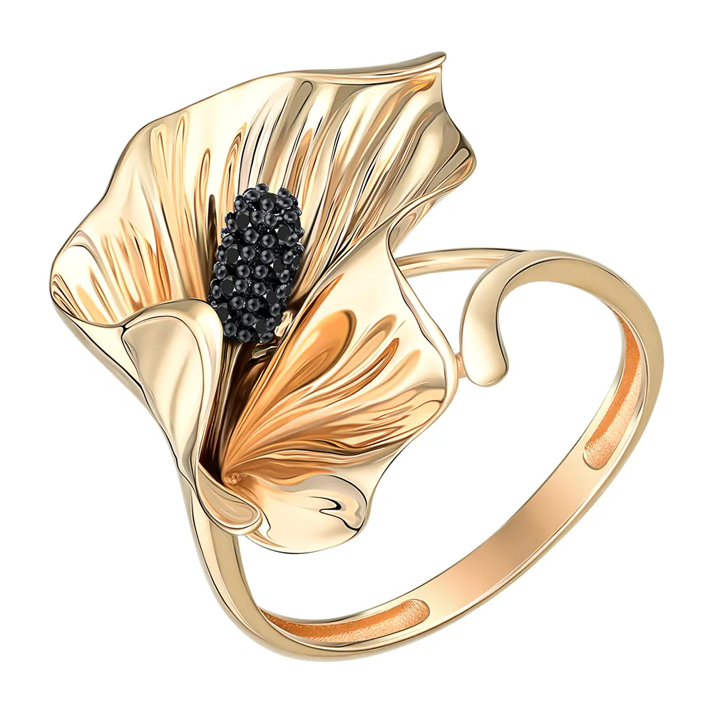 Кольцо печатка из красного золота с фианитами 902901-1102