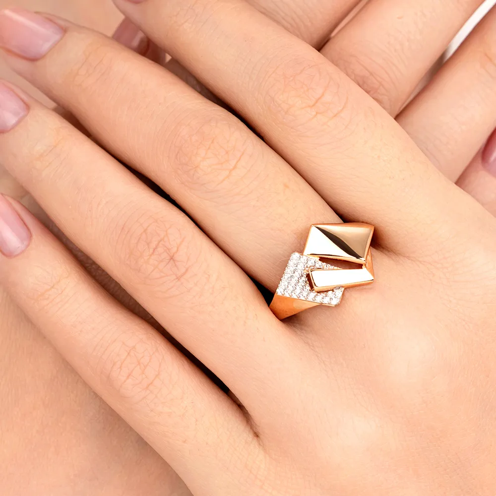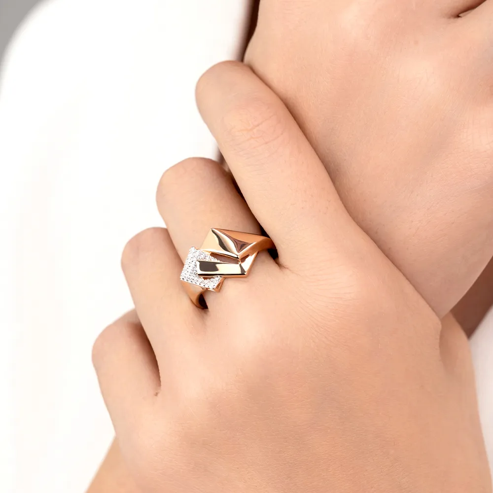 Кольцо из красного золота с фианитами