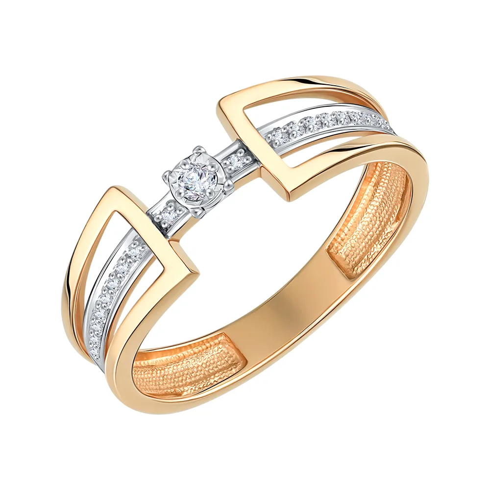 Кольцо печатка из красного золота с фианитами 902901-1102