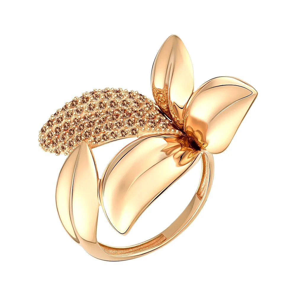 Кольцо печатка из красного золота с фианитами 902901-1102