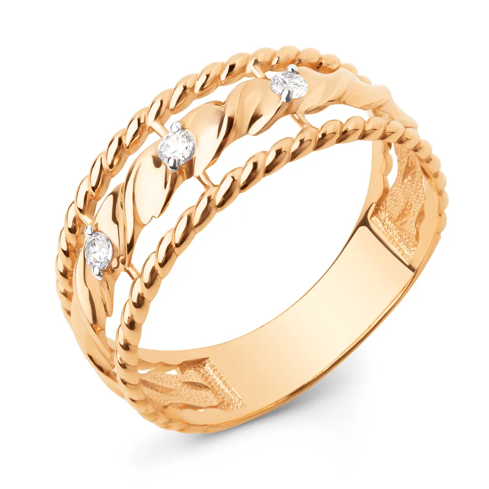 Кольцо из красного золота с фианитами