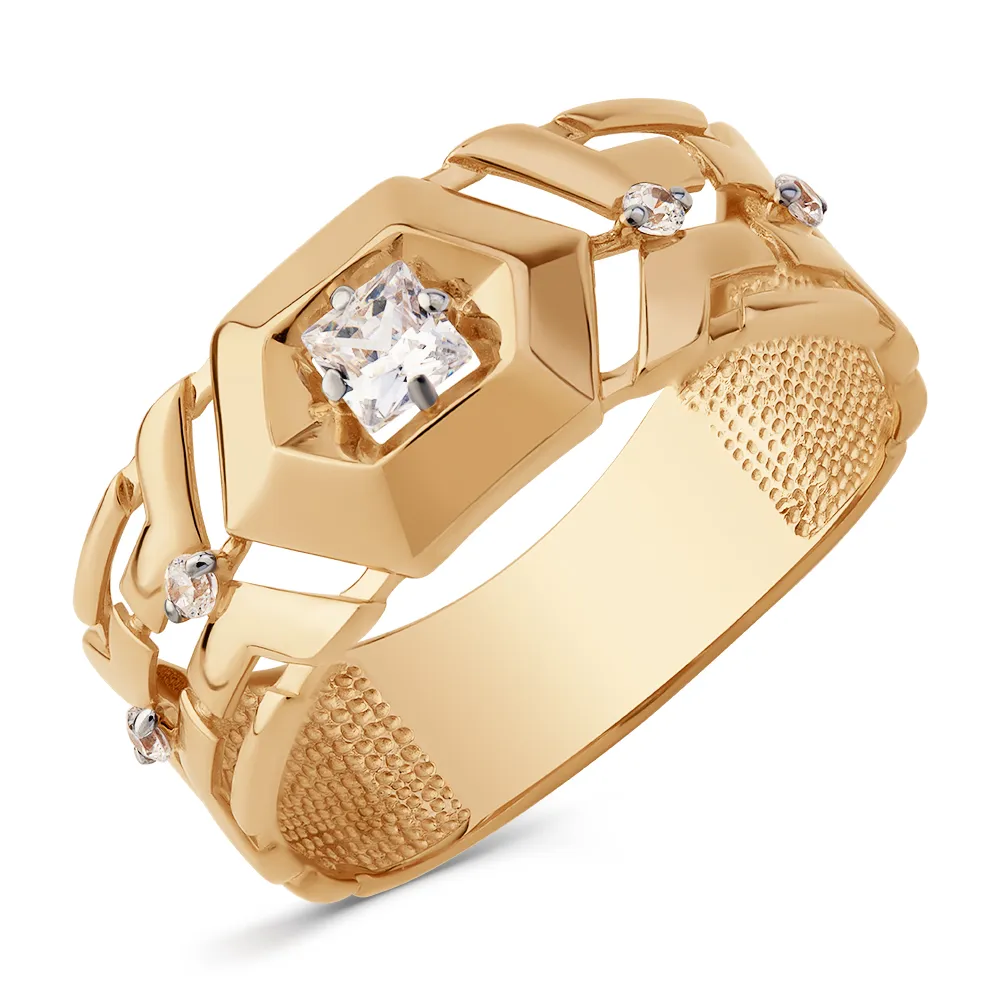 Кольцо из красного золота с фианитами