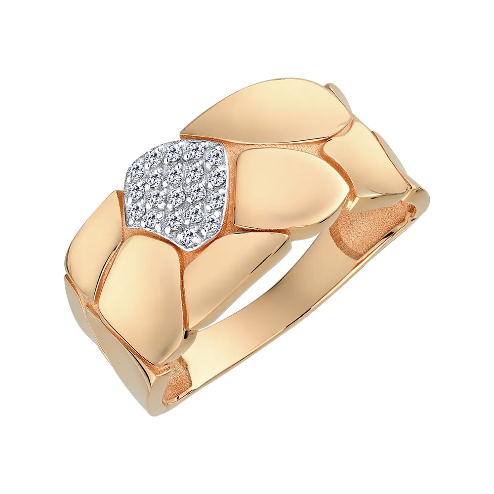 Кольцо печатка из красного золота с фианитами 902901-1102