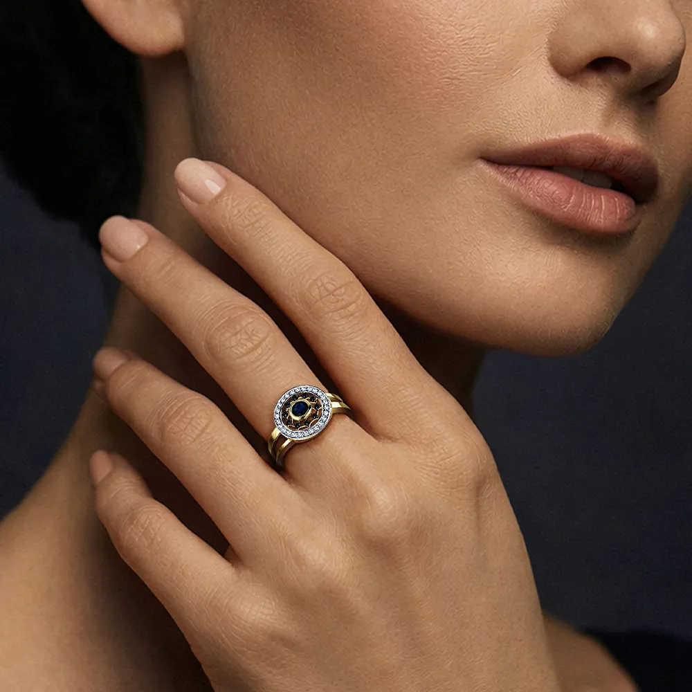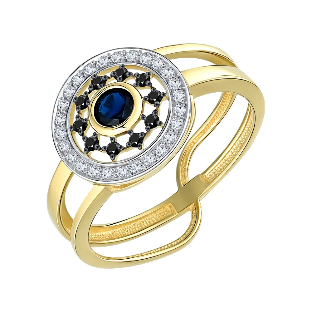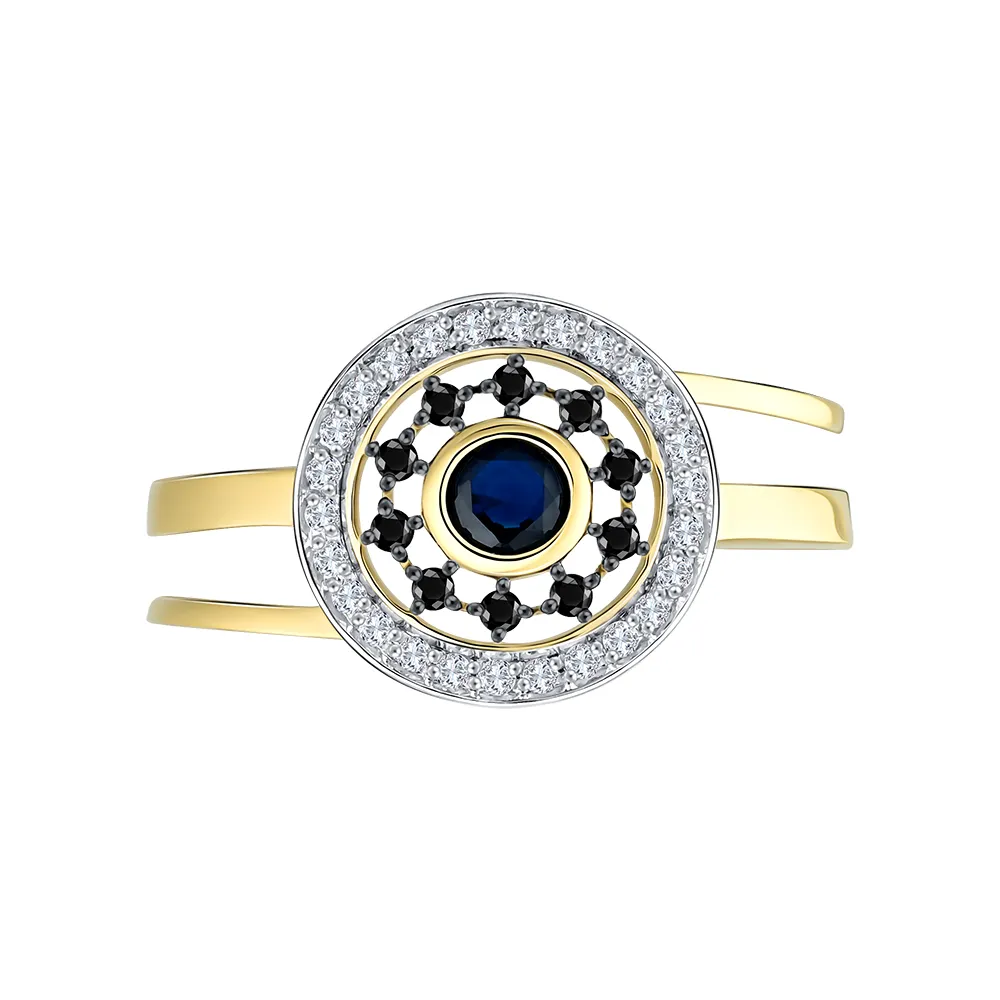 Кольцо из желтого золота с бриллиантами и сапфиром