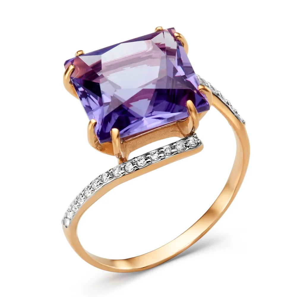 Кольцо печатка из красного золота с фианитами 902901-1102