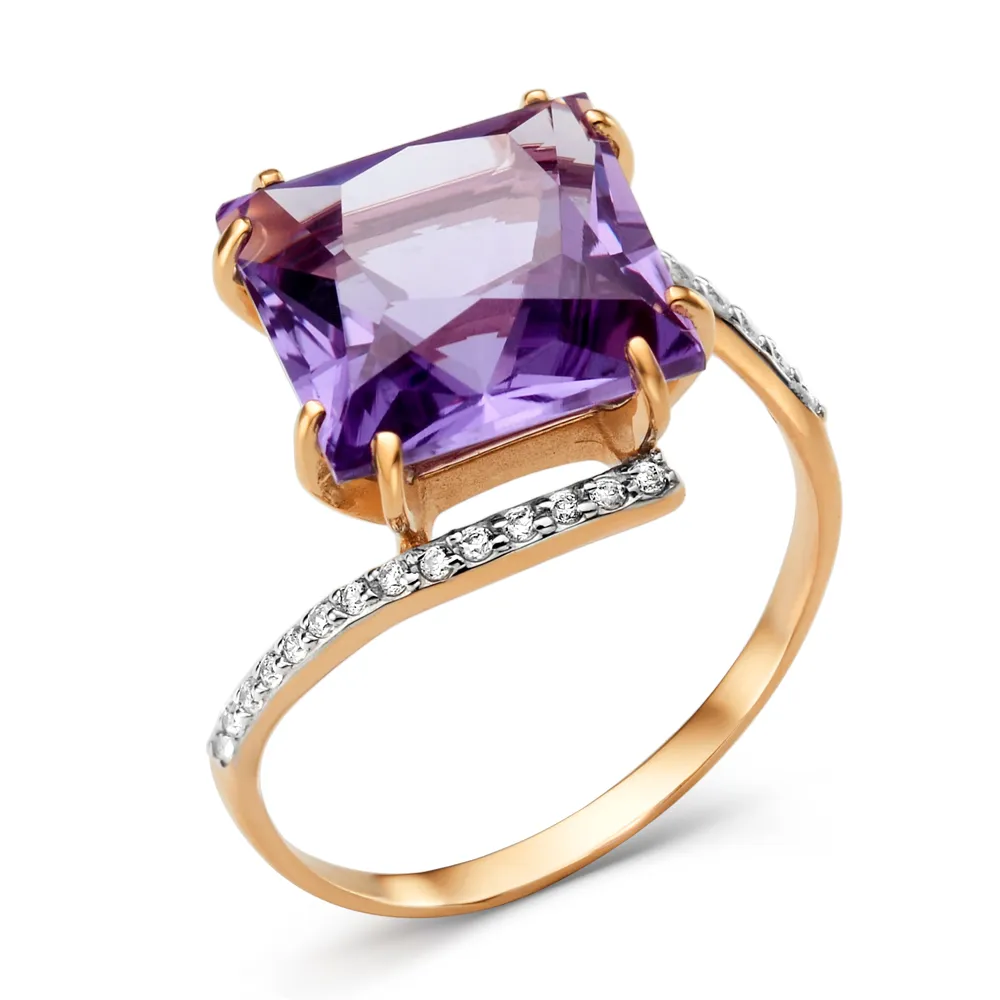 Кольцо из красного золота с фианитами