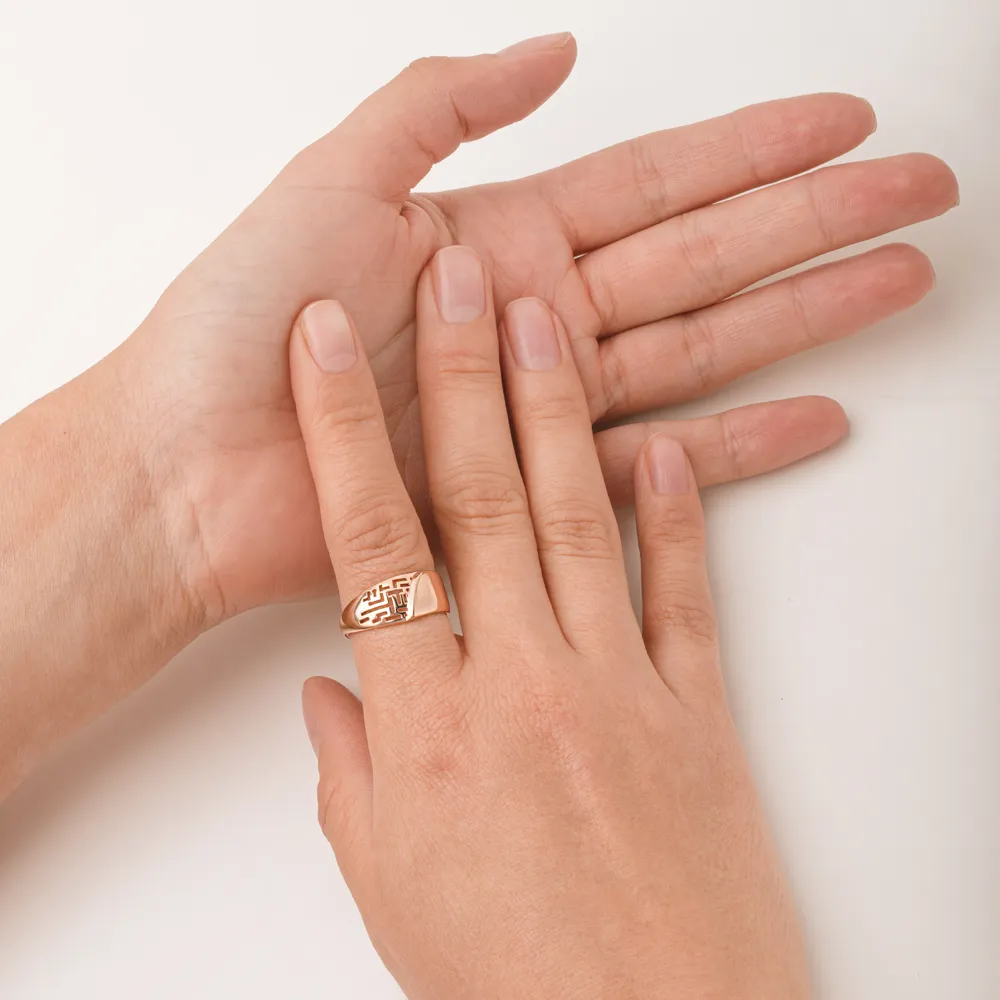 Кольцо печатка из красного золота с фианитами 902901-1102