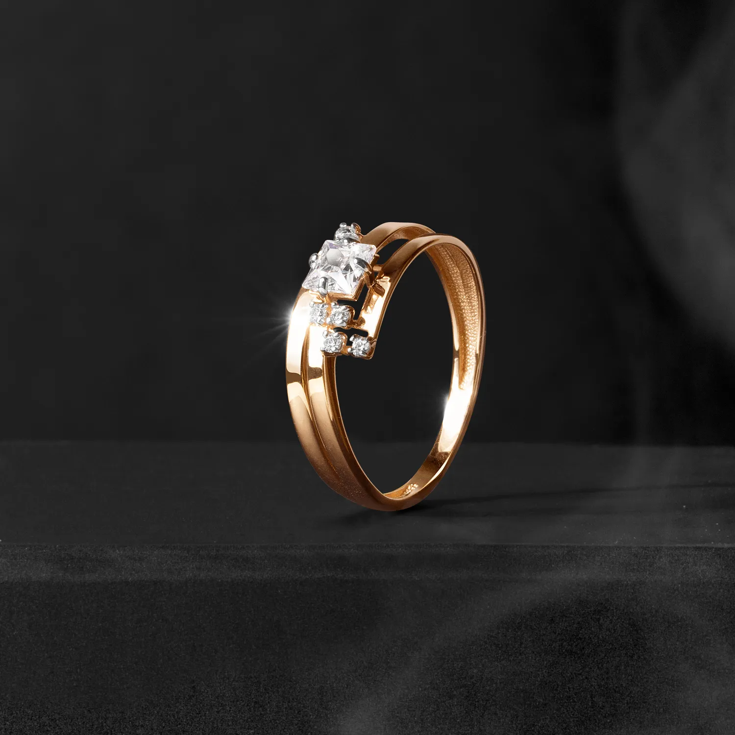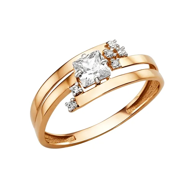 Кольцо из красного золота с фианитами