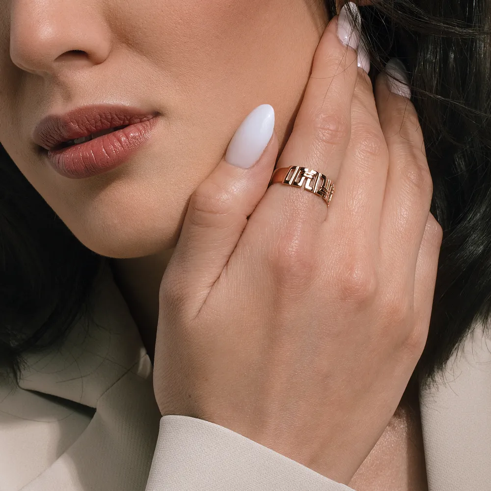 Кольцо печатка из красного золота с фианитами 902901-1102