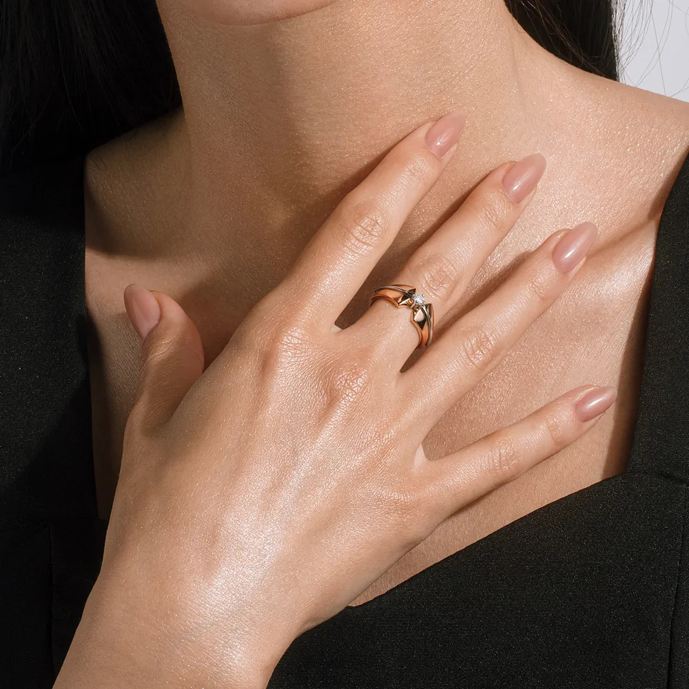 Кольцо из красного золота с фианитом