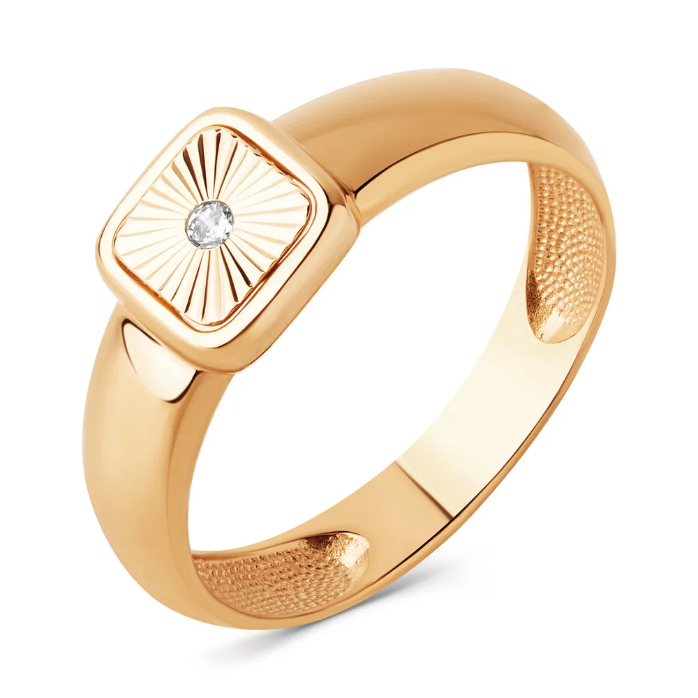 Кольцо из красного золота с фианитом