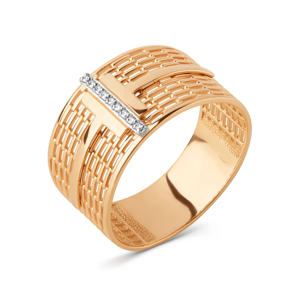 Кольцо из красного золота с фианитами