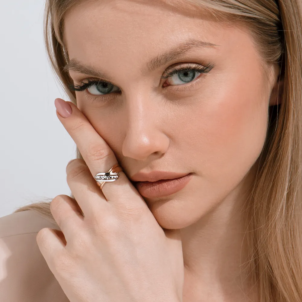 Кольцо печатка из красного золота с фианитами 902901-1102