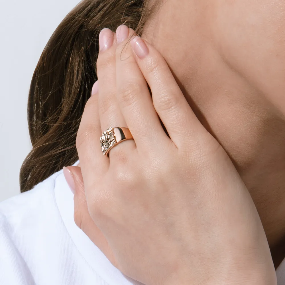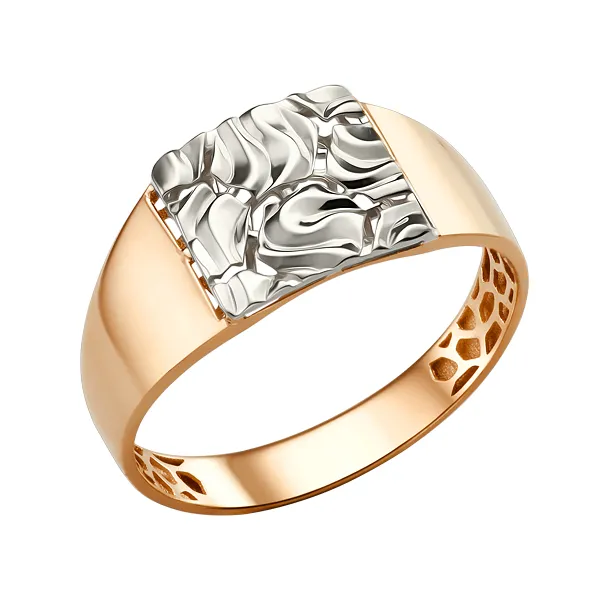 Кольцо печатка из красного золота с фианитами 902901-1102