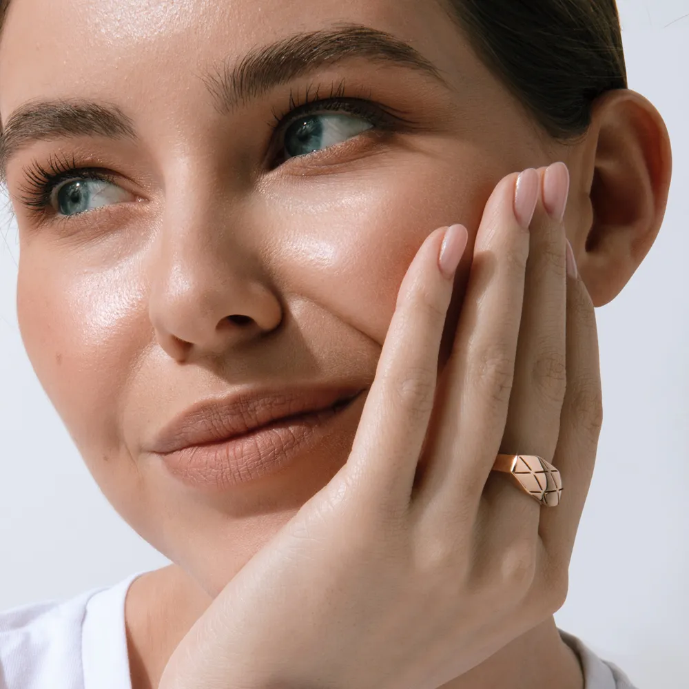 Кольцо печатка из красного золота с фианитами 902901-1102