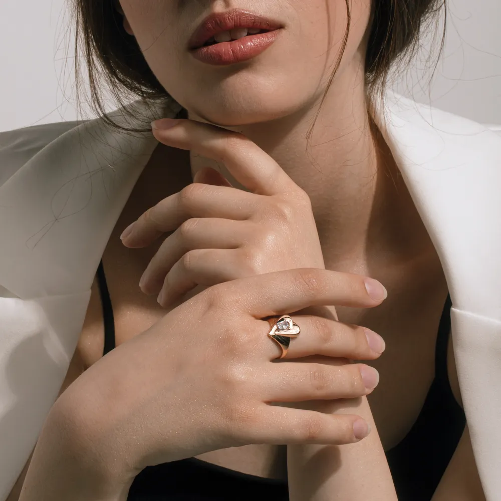 Кольцо печатка из красного золота с фианитами 902901-1102