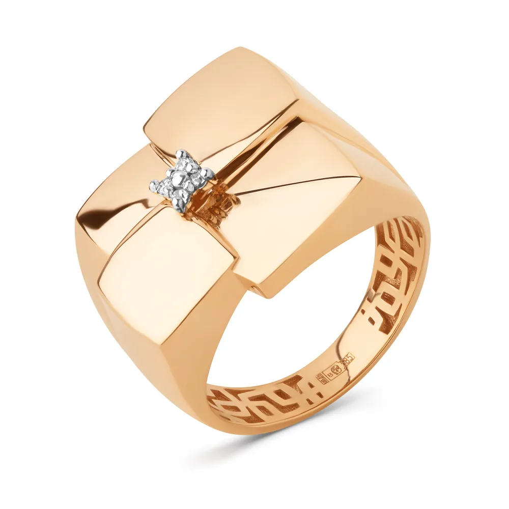Кольцо печатка из красного золота с фианитами 902901-1102