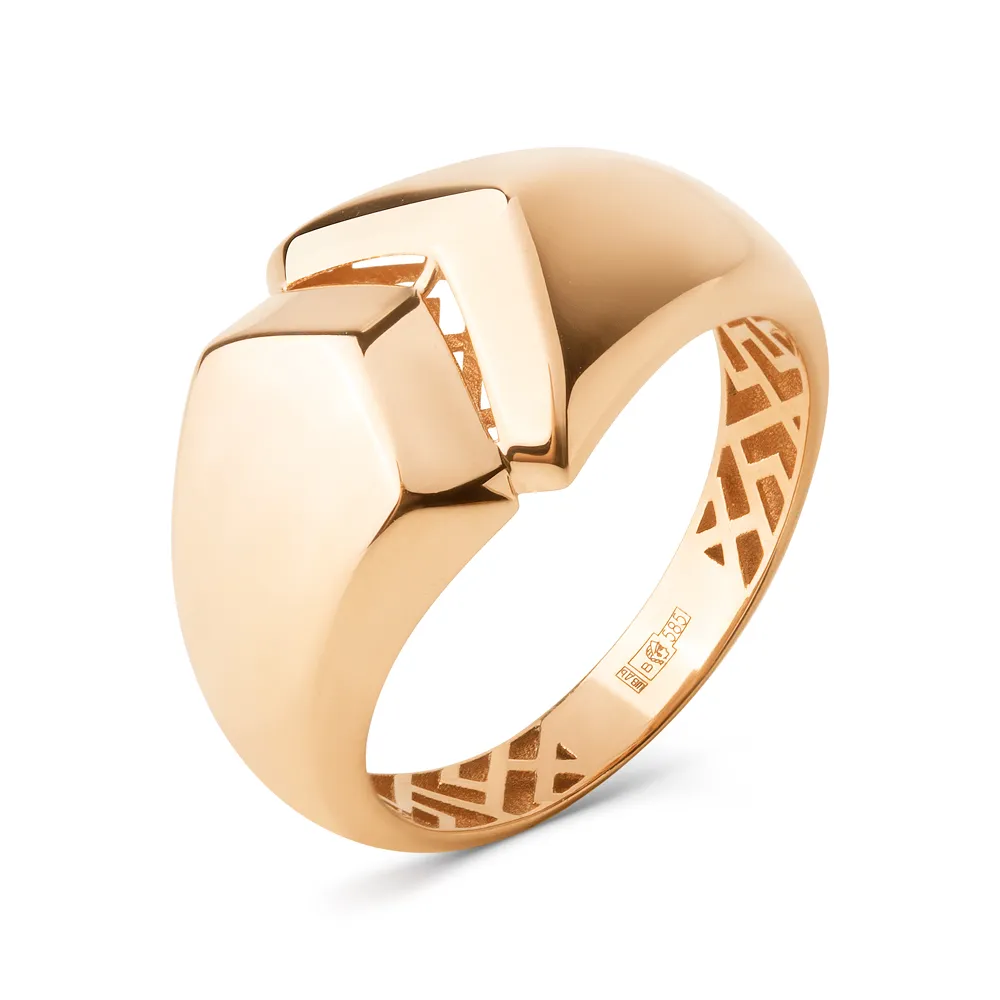 Кольцо печатка из красного золота с фианитами 902901-1102