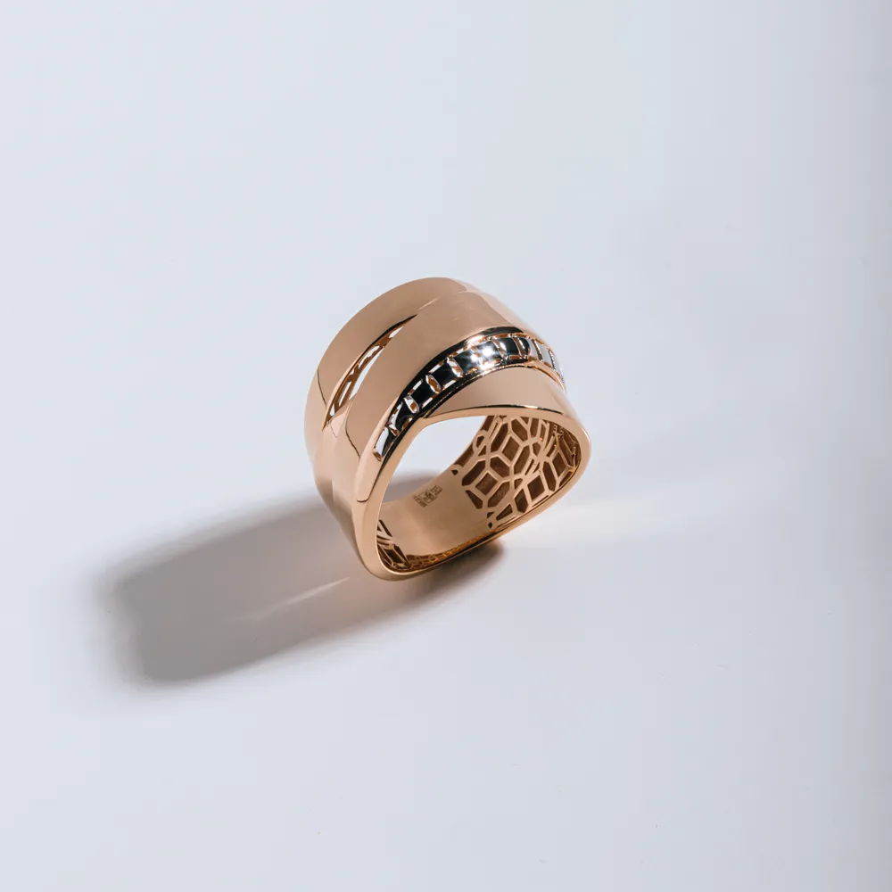 Кольцо печатка из красного золота с фианитами 902901-1102