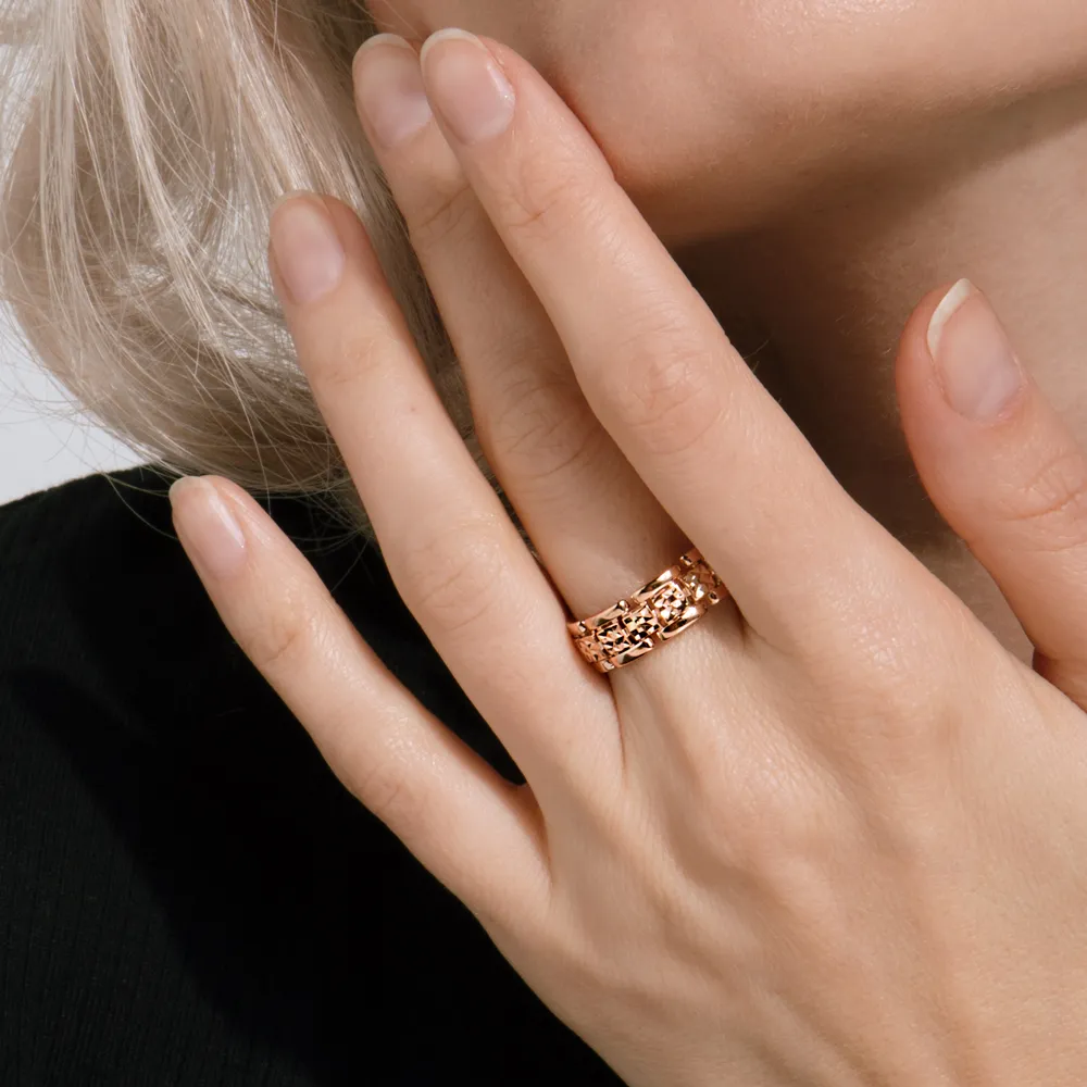 Кольцо печатка из красного золота с фианитами 902901-1102