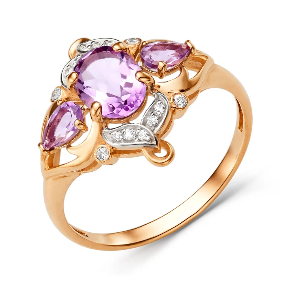 621774:337 Кольцо из красного золота с аметистами Коллекция - Основная 0