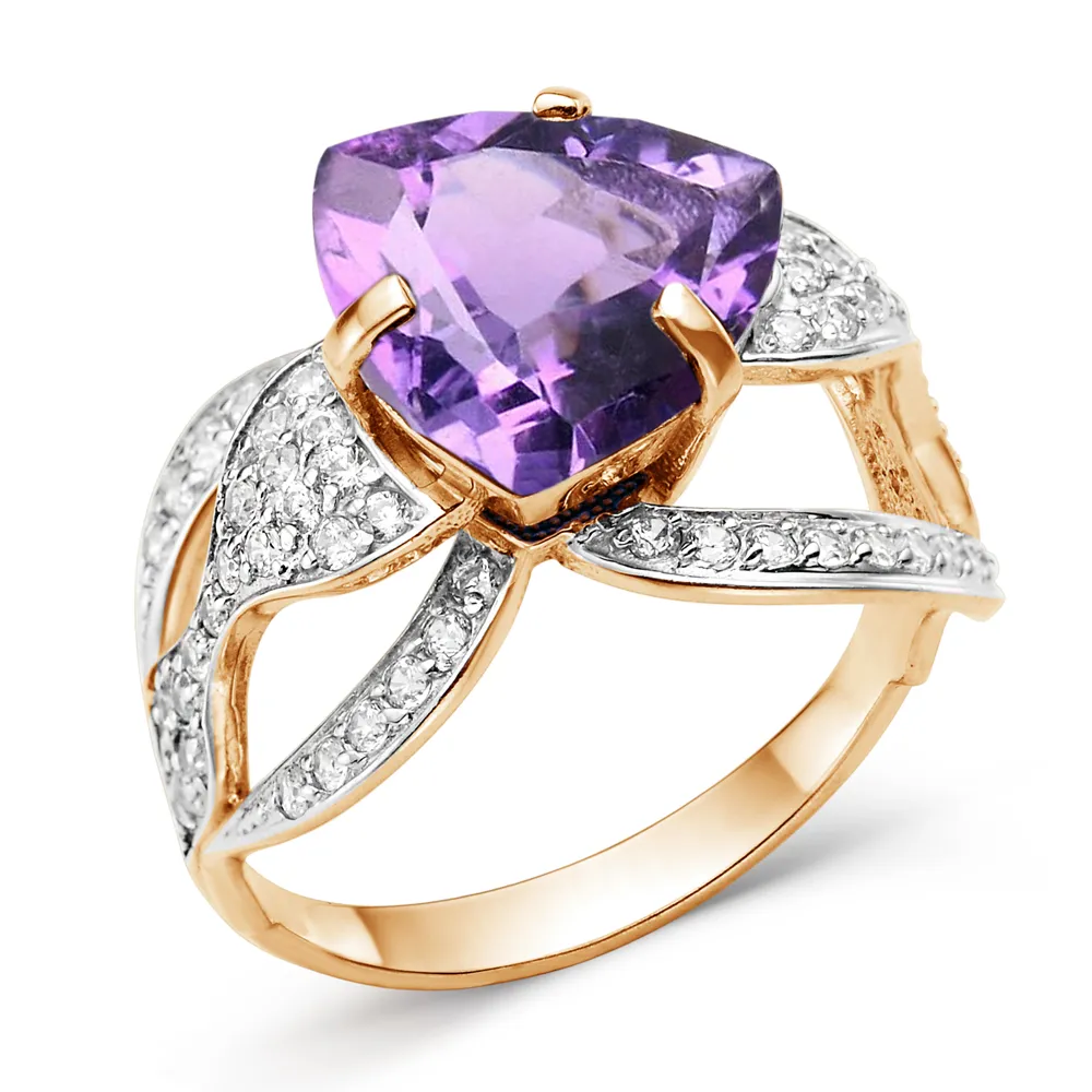 Кольцо из красного золота с аметистом