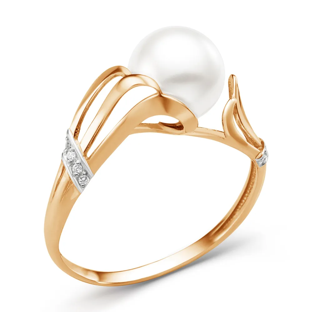 Кольцо из красного золота с бриллиантами и жемчугом