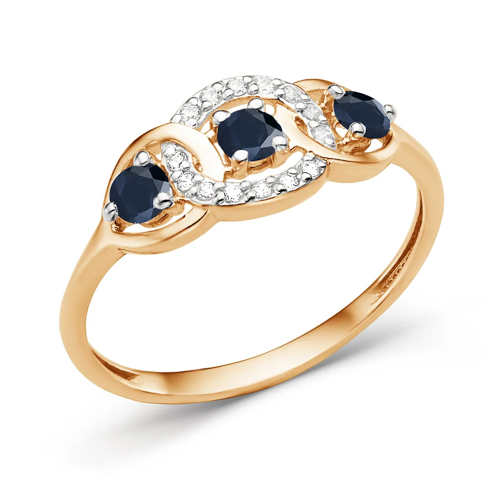 Кольцо из красного золота с бриллиантами и сапфирами