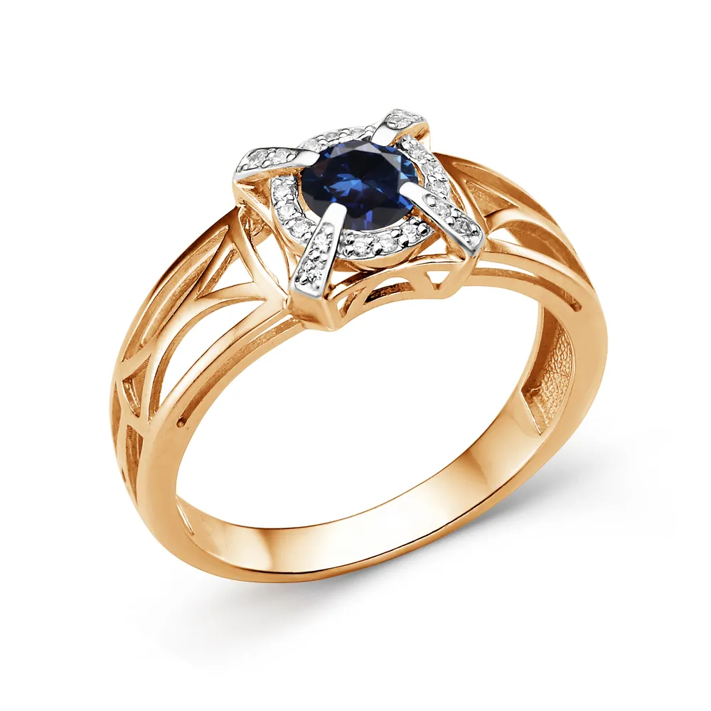 610951:337 Кольцо из красного золота с бриллиантами и сапфиром Коллекция - Основная 0