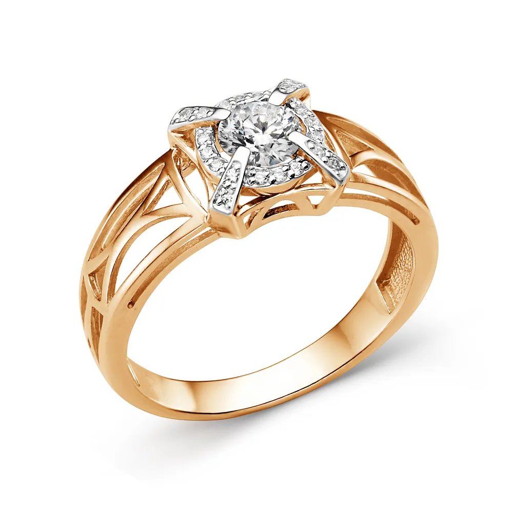 Кольцо из красного золота с фианитами