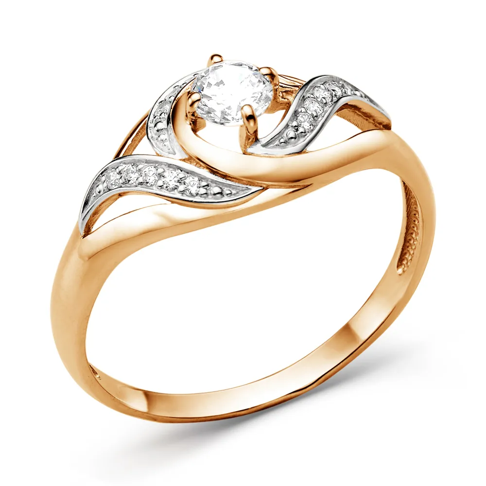 Кольцо из красного золота с фианитами