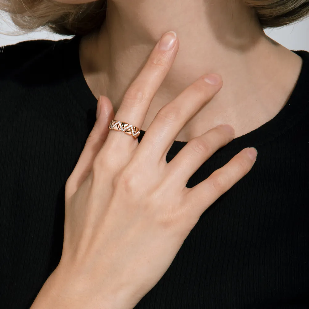 Кольцо из красного золота с фианитами