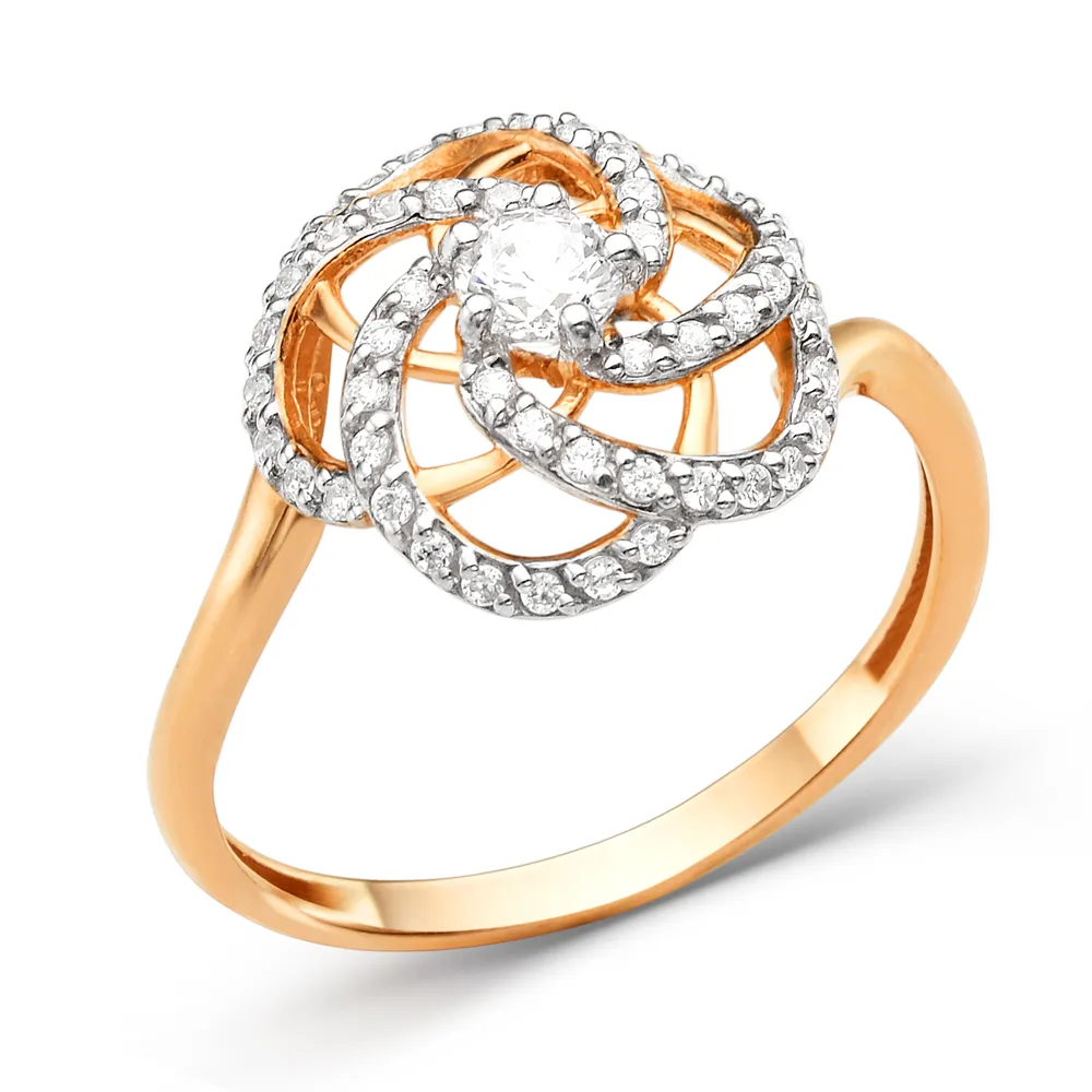 Кольцо из красного золота с фианитами