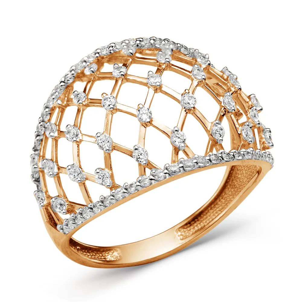 Кольцо из красного золота с фианитами