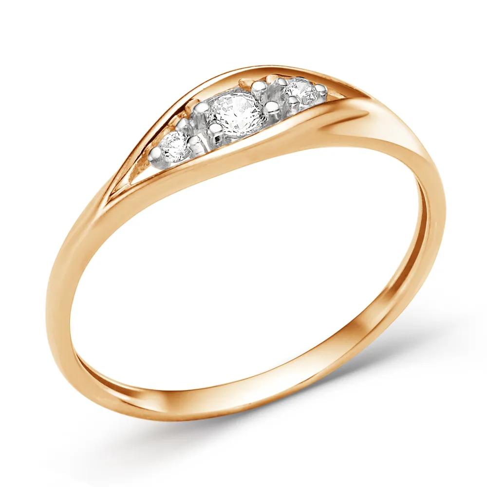 Кольцо из красного золота с фианитами