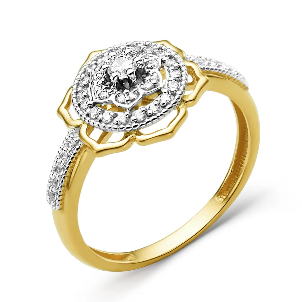 Кольцо из желтого золота с фианитами