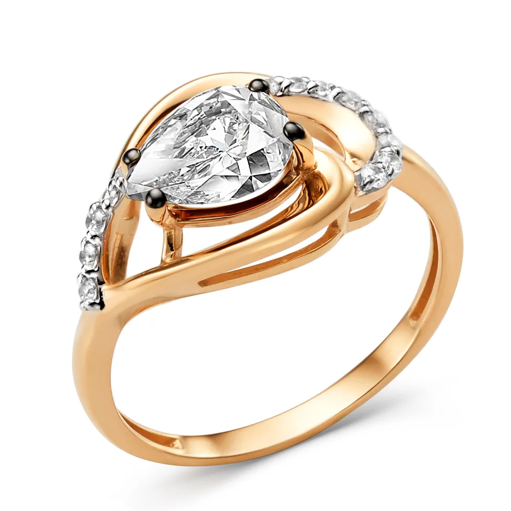 Кольцо из красного золота с фианитами