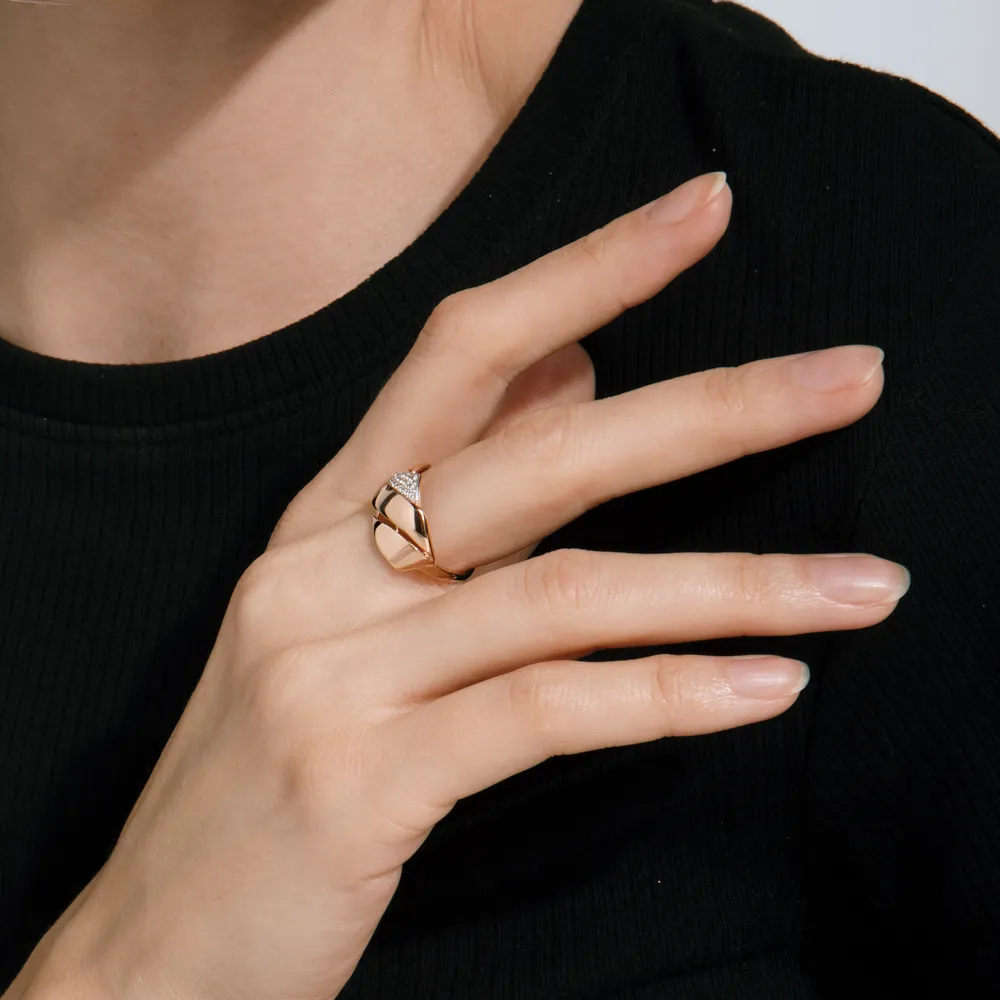 Кольцо печатка из красного золота с фианитами 902901-1102