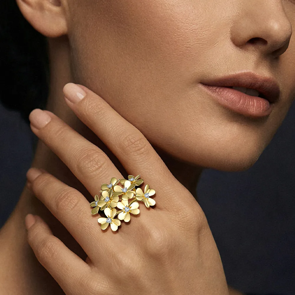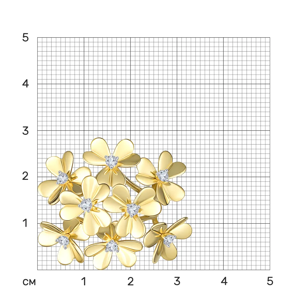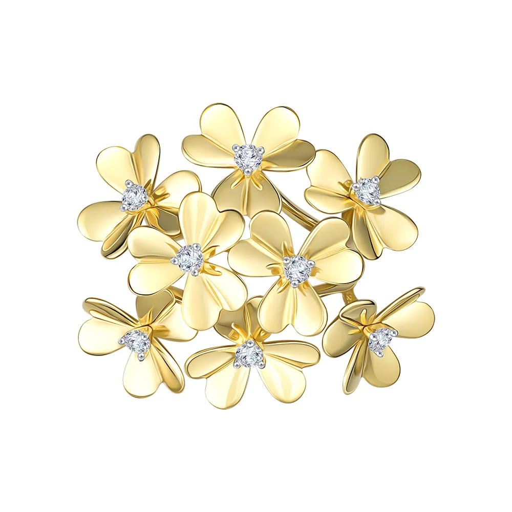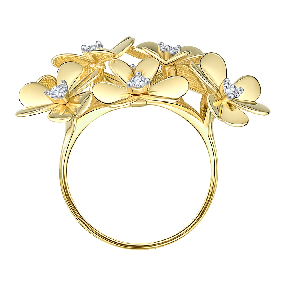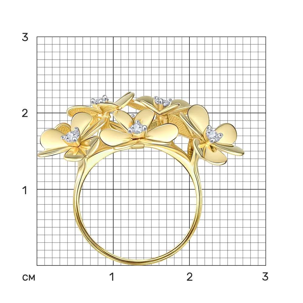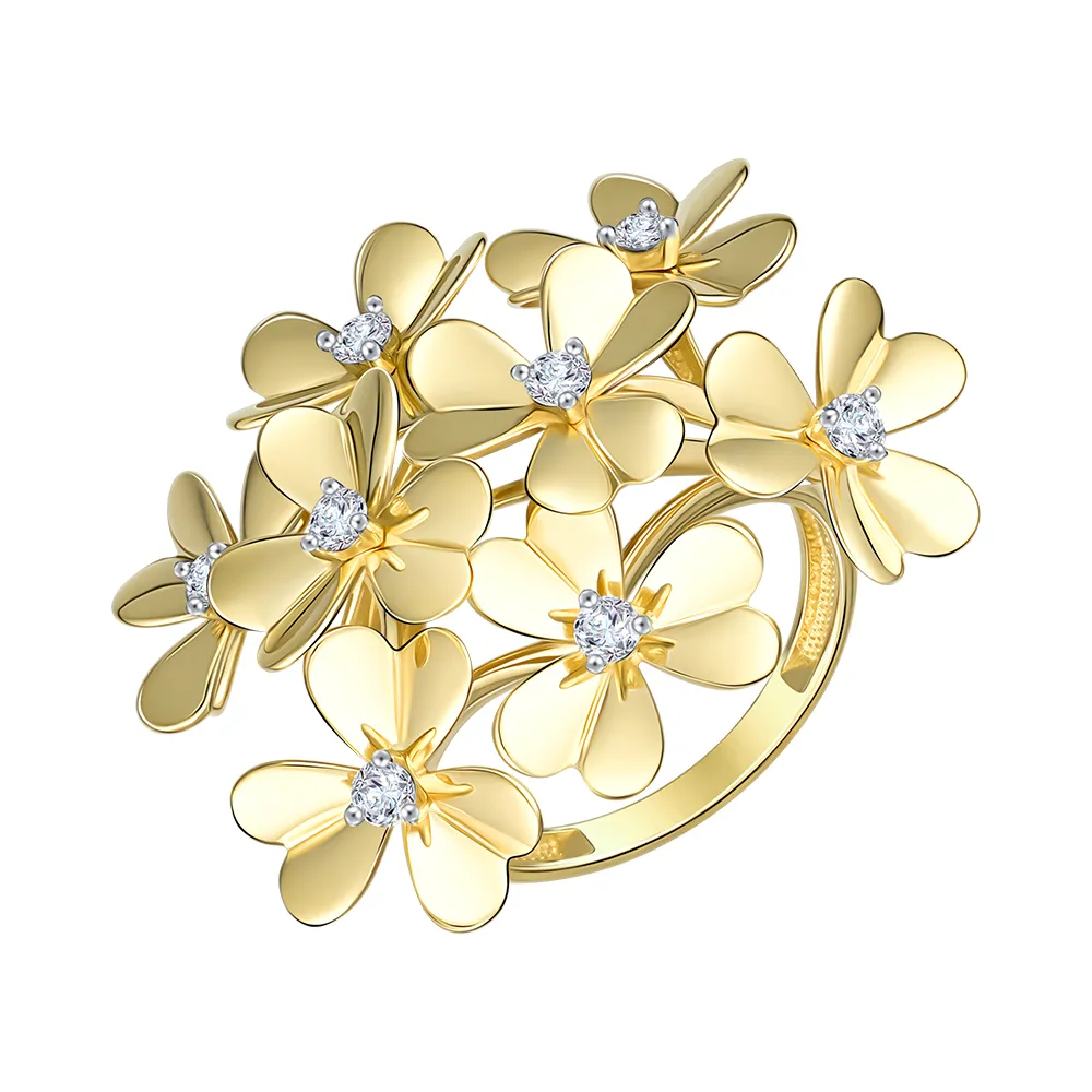 644905:337 Кольцо из желтого золота с фианитами Коллекция - Флора 0
