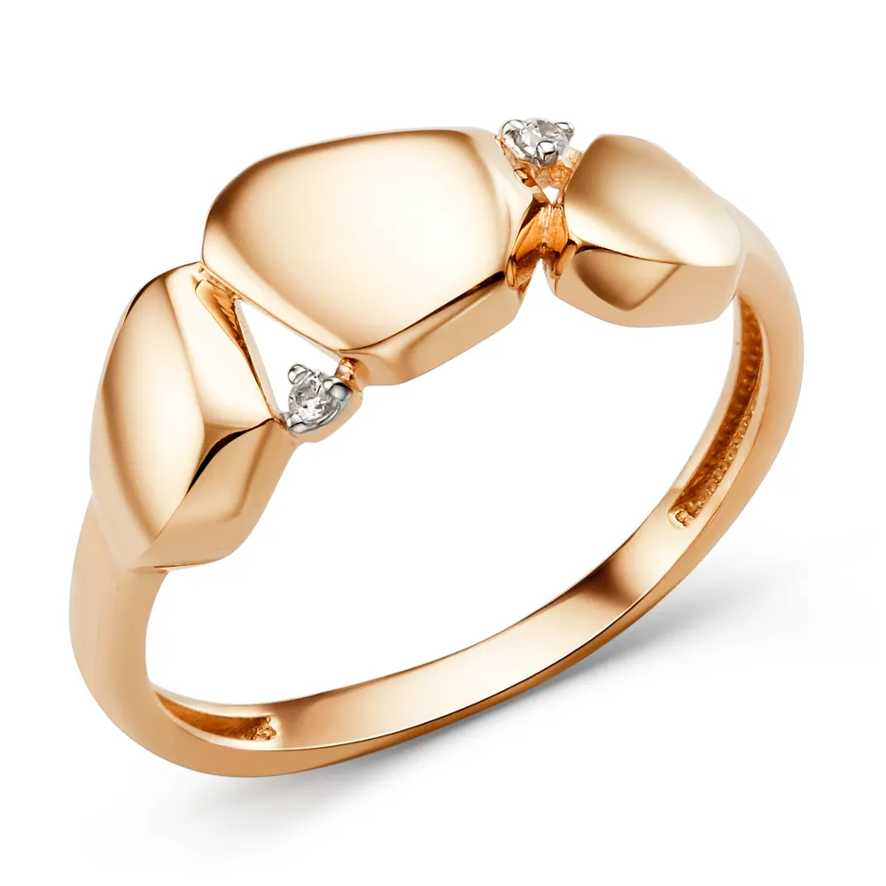 Кольцо печатка из красного золота с фианитами 902901-1102