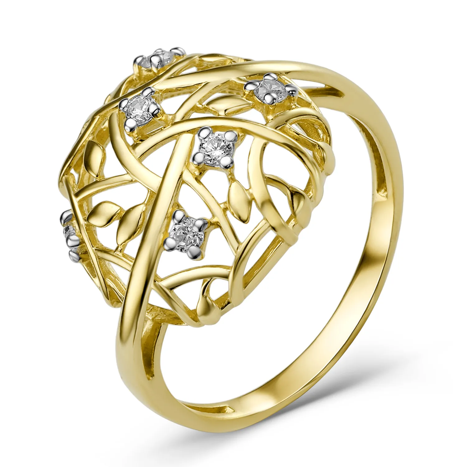 Кольцо из желтого золота с фианитами