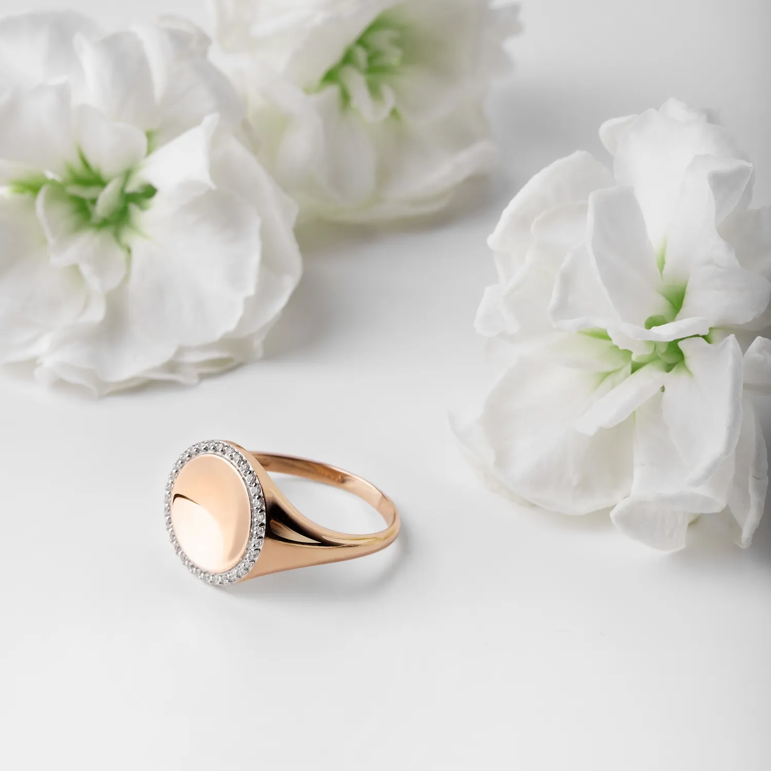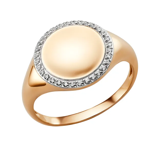 Кольцо печатка из красного золота с фианитами 902901-1102
